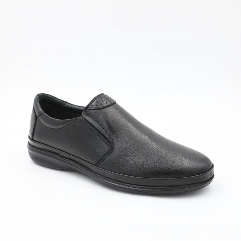 حذاء طبي جلد بدون رباط للرجال لون أسود