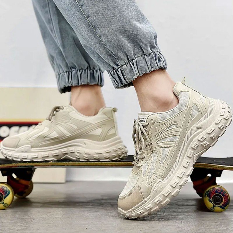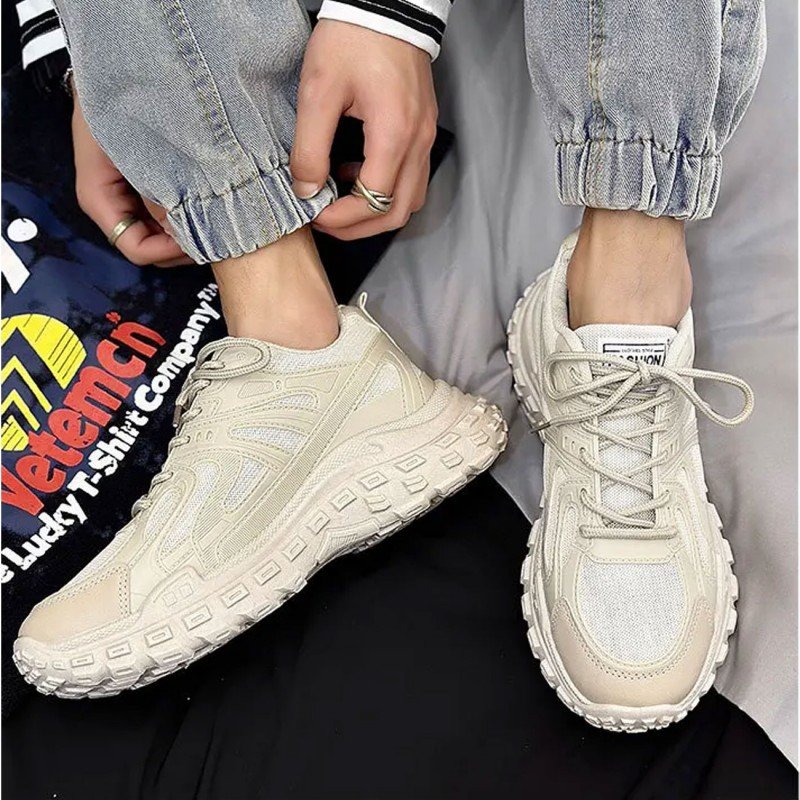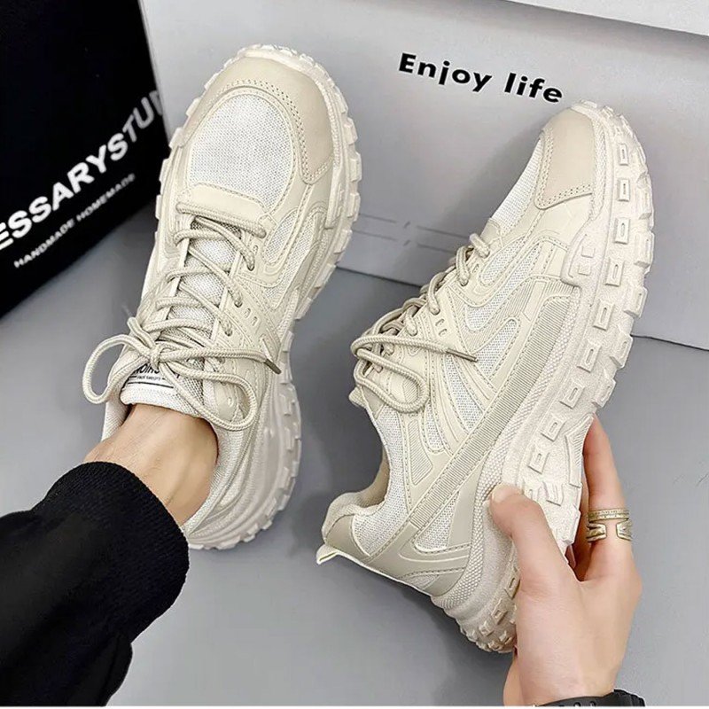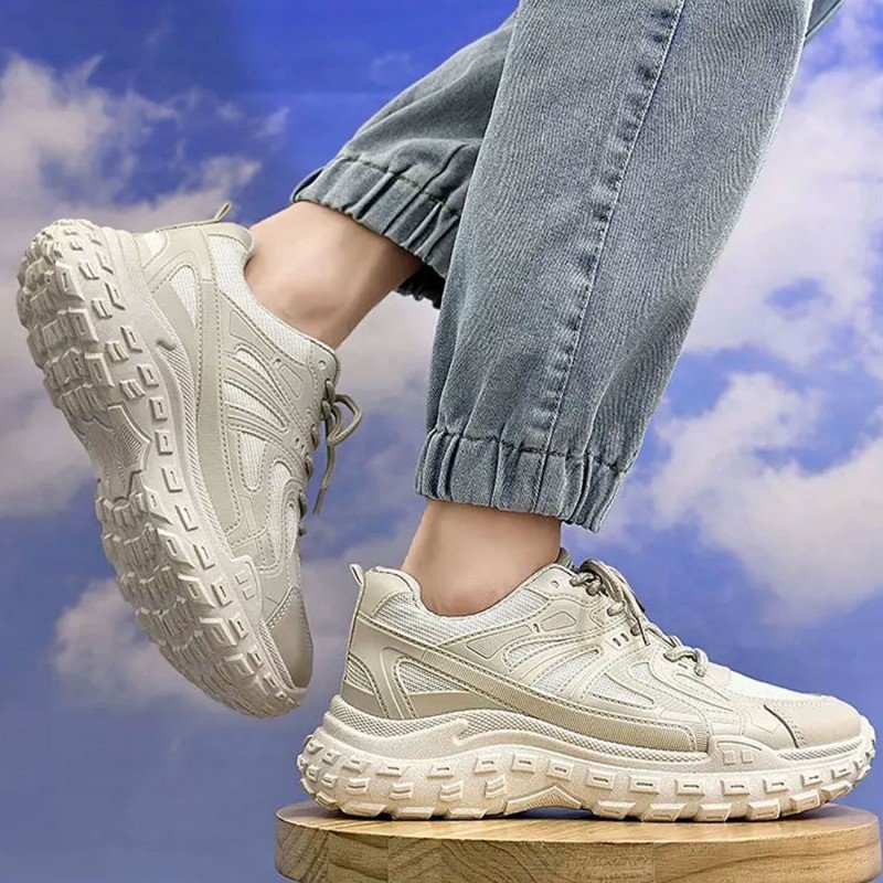 ✅ حذاء رياضي بتصميم شبكي ونعل سميك للرجال.
