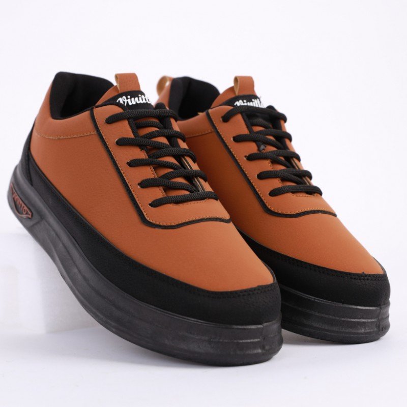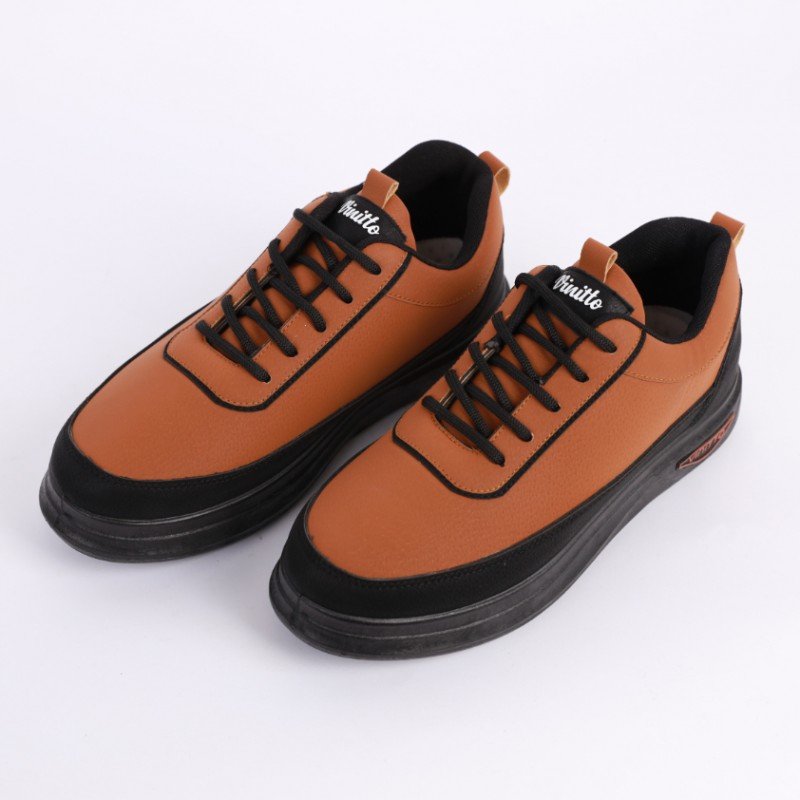 حذاء كاجوال جلد للرجال لون عسلي