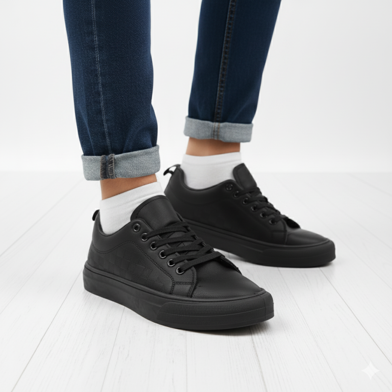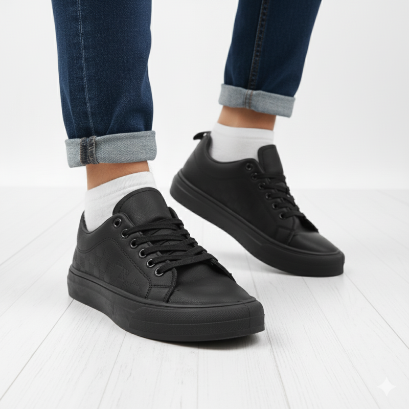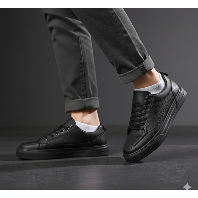 حذاء كاجوال شبابي جلد للرجال لون أسود