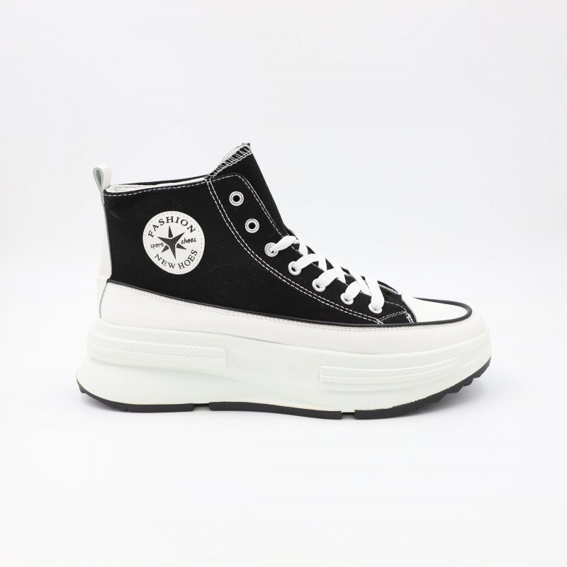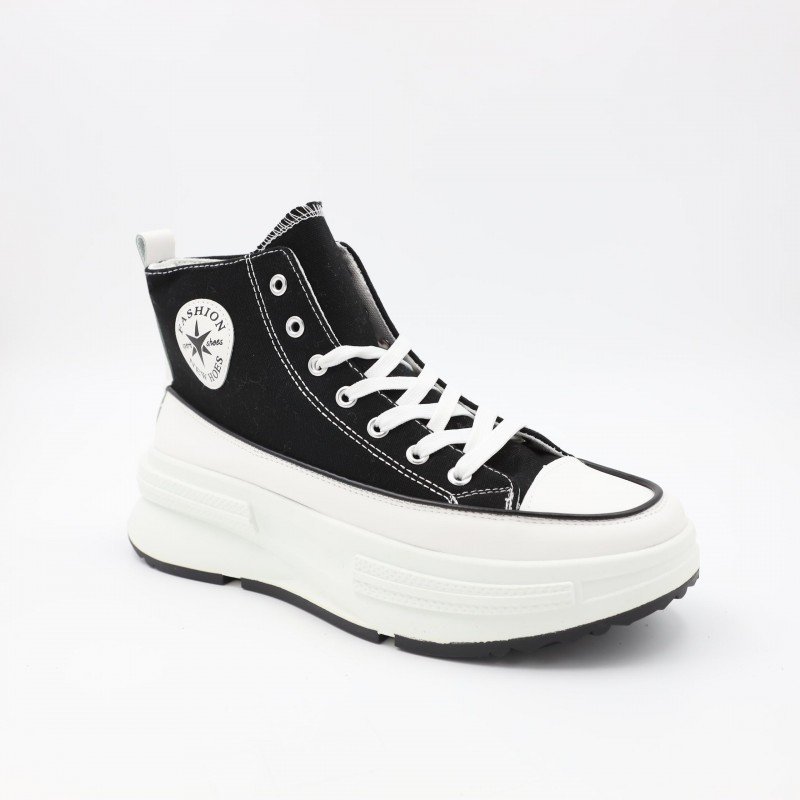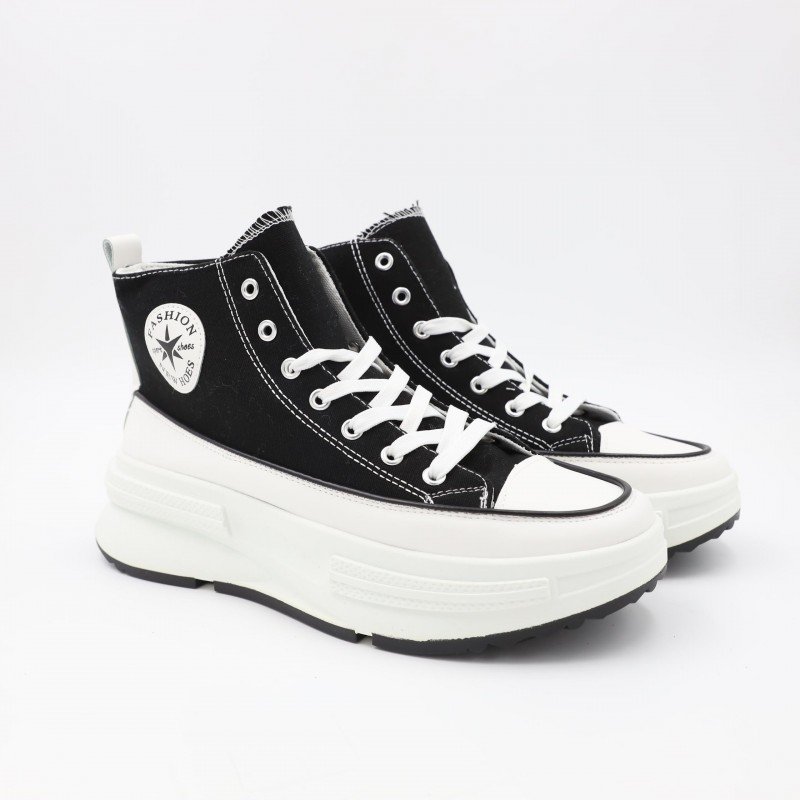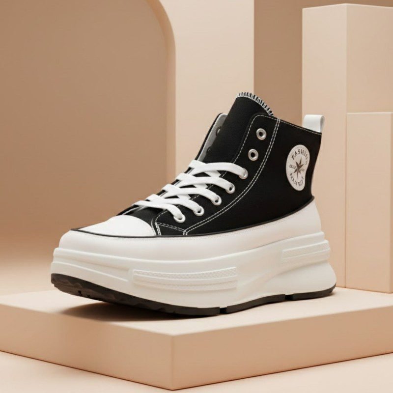 حذاء كاجول نعل عالي شبابي لون أسود ونعل أبيض