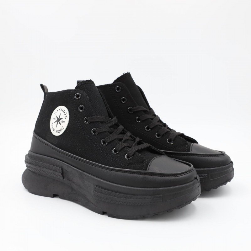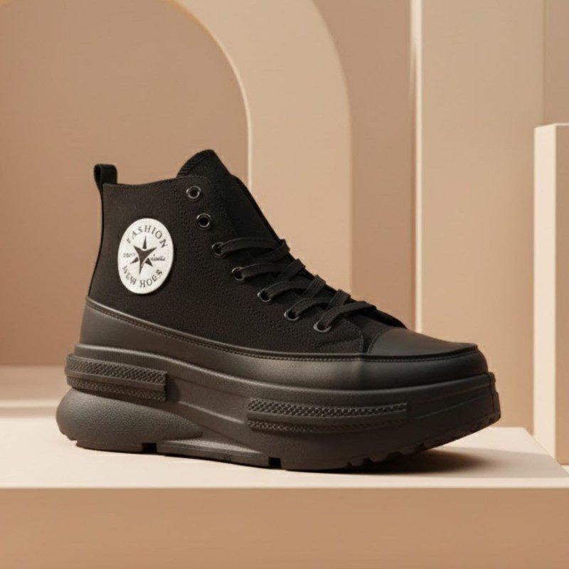 حذاء كاجول نعل عالي شبابي لون أسود ونعل أبيض