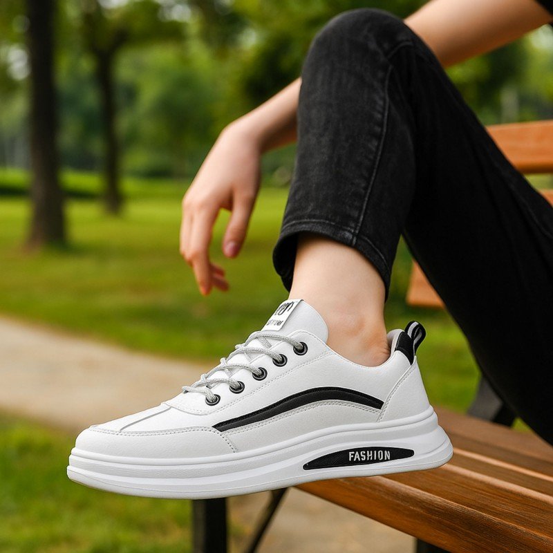حذاء رياضي كاجوال بلون أبيض أنيق بتصميم عصري ومريح!