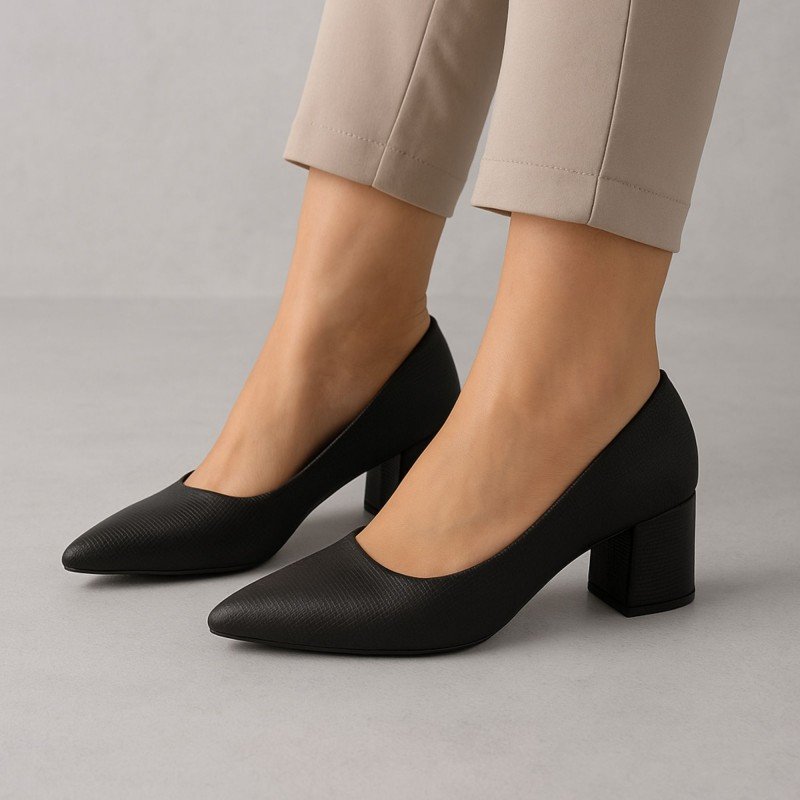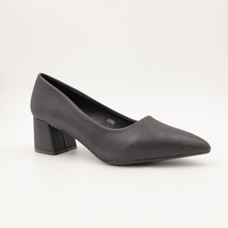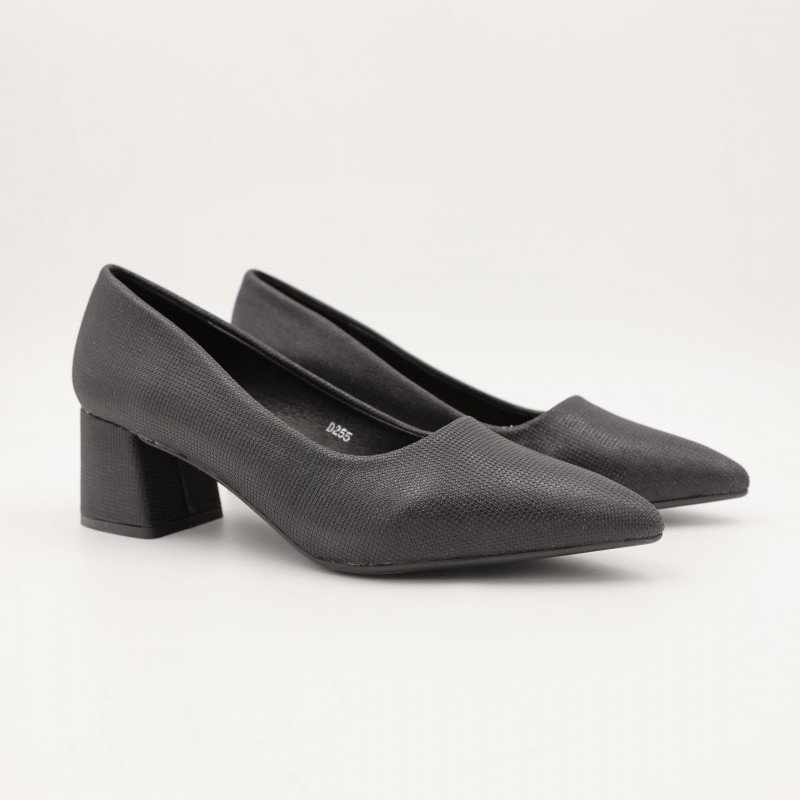 حذاء كعب ستاتي عريض متوسط لون اسود