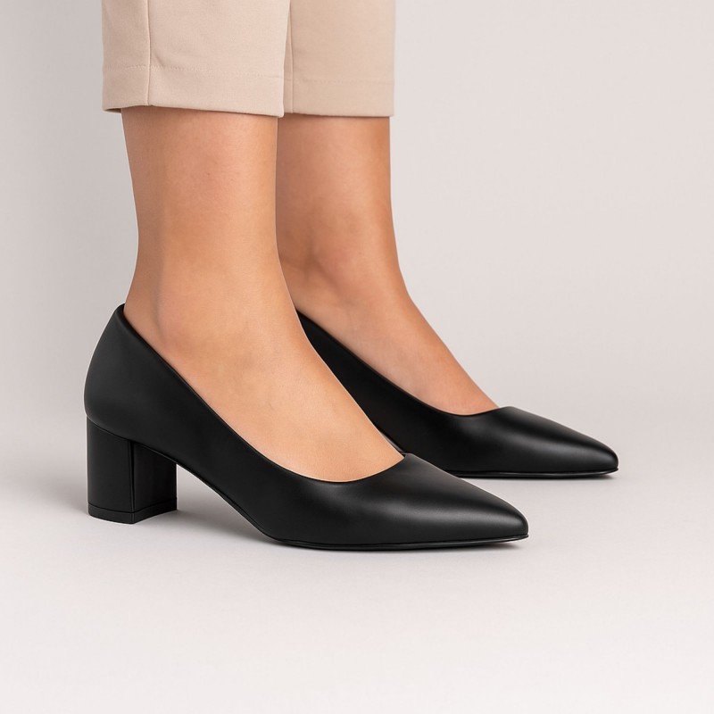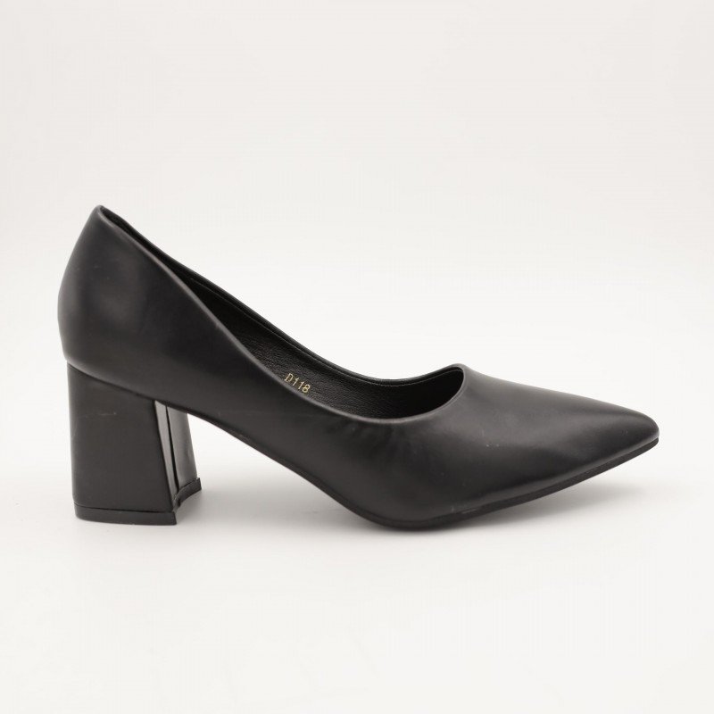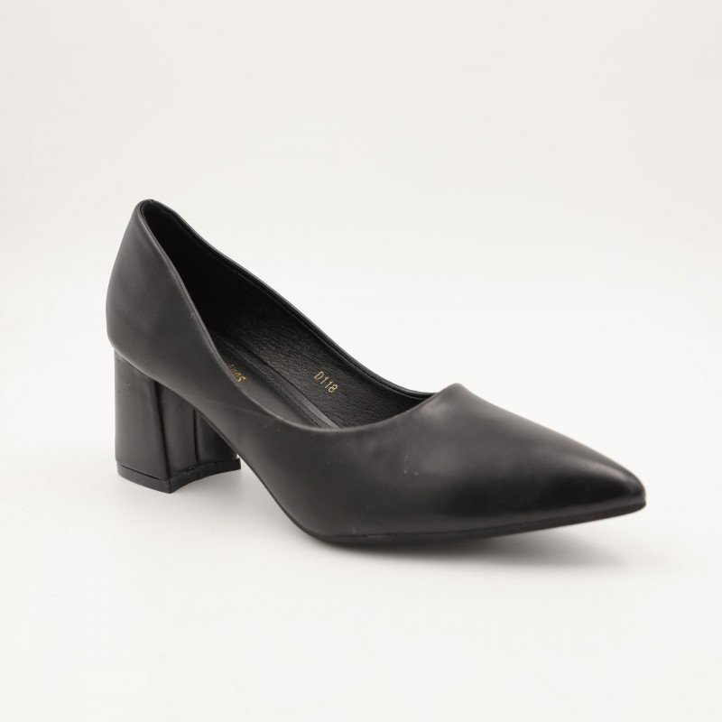 حذاء كعب عريض متوسط للنساء لون اسود