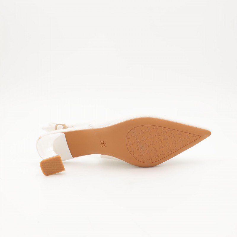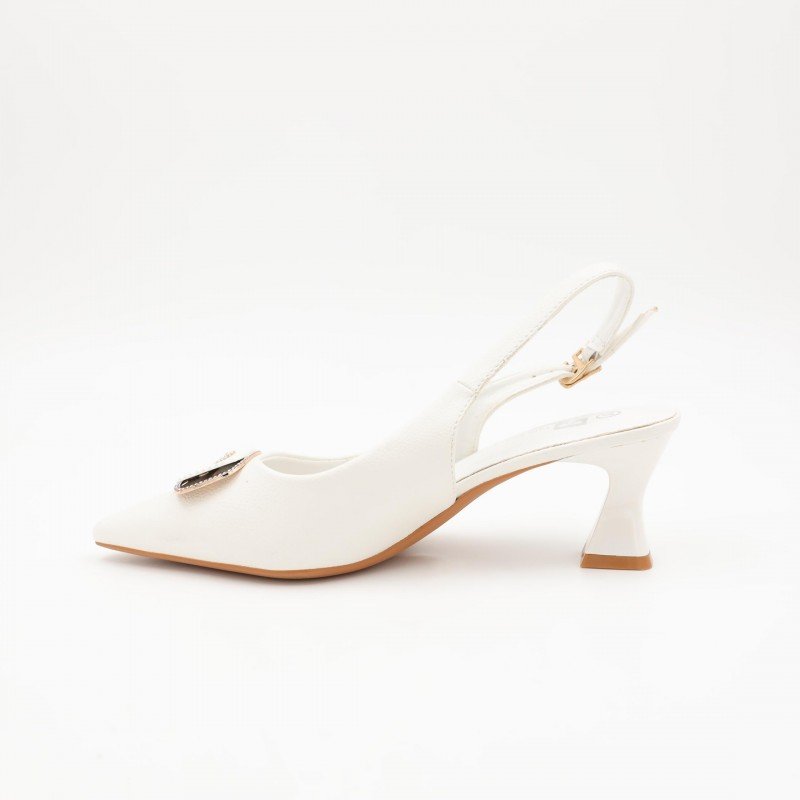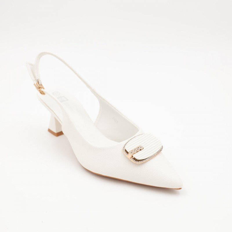 حذاء كعب متوسط رفيع ستاتي بتصميم مفتوح من الخلف لون ابيض