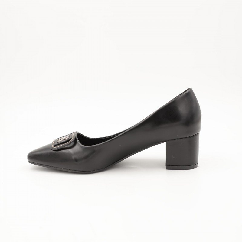 حذاء كعب متوسط نسائي بتصميم كلاسيكي لون اسود