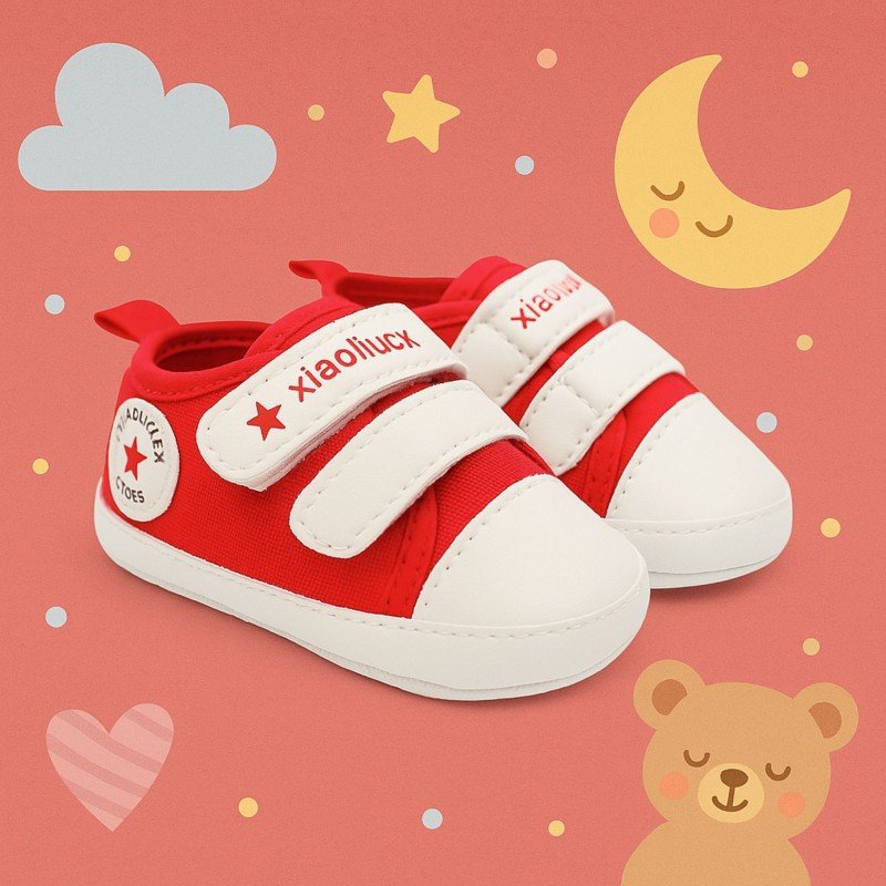 حذاء للأطفال لون أحمر وأبيض حديثي الولادة