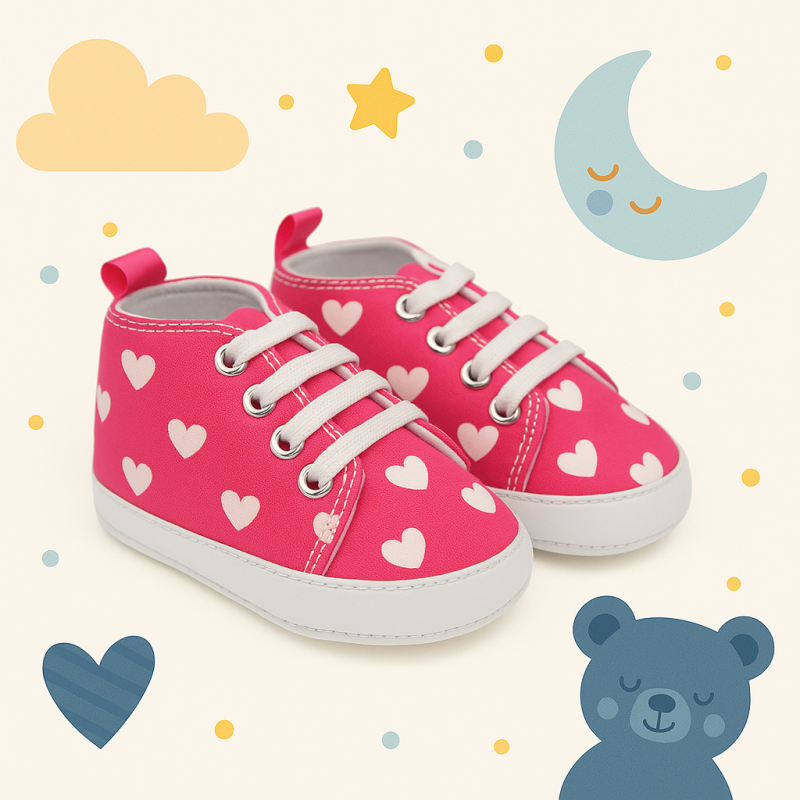 حذاء للأطفال لون زهري غامق وأبيض حديثي الولادة