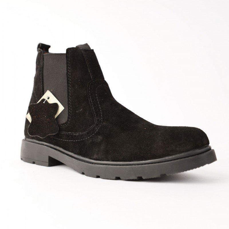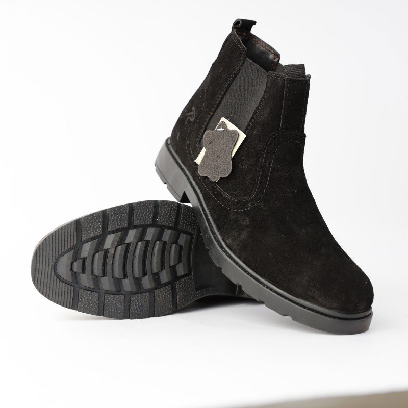 ✅ حذاء مخمل رسمي كاحل متوسط الارتفاع لون أسود
