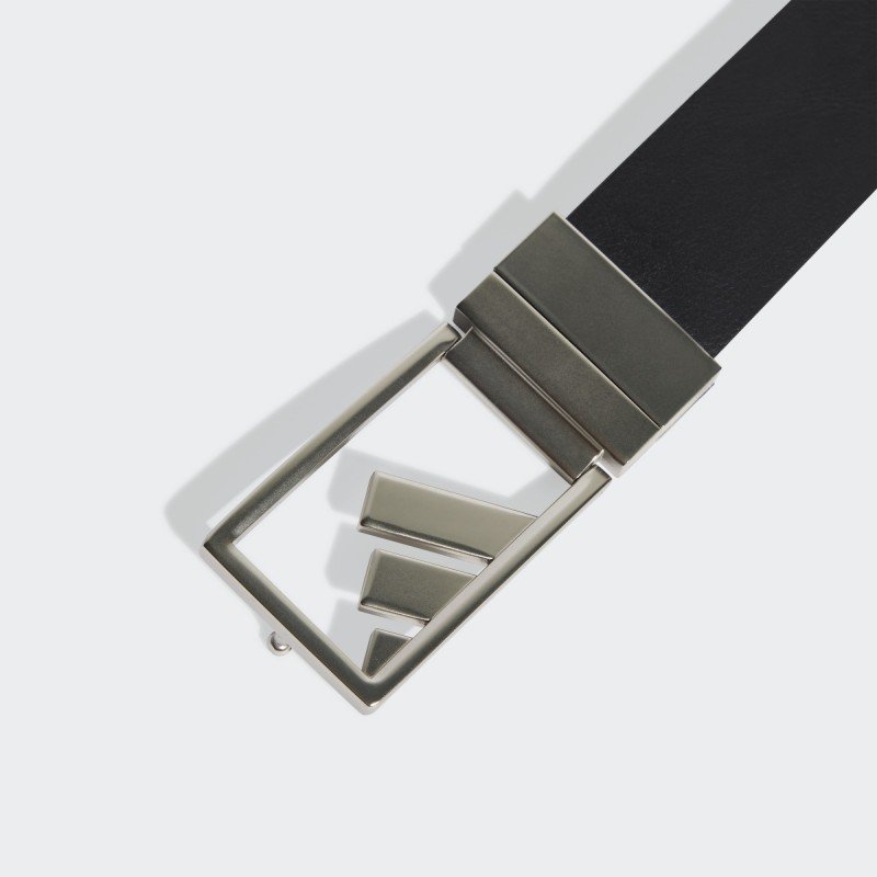 Play your round in 3-Stripes style. This adidas golf belt shows off your course style with synthetic leather and a brushed silver buckle. The reversible strap lets you change up the look. Cut it to a comfortable size for the perfect fit.