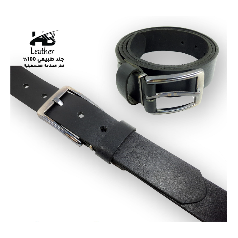 حزام رجالي جلد طبيعي عرض 3.3لون اسود مناسب للبنطلون الرسمي )القماش(