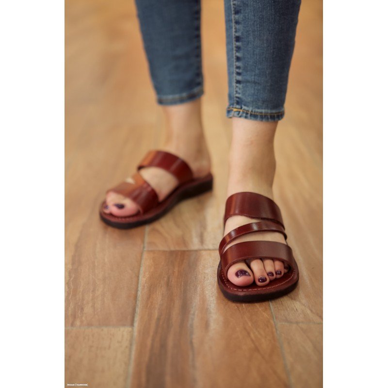 شبشب جلد طبيعي للنساء لون بني