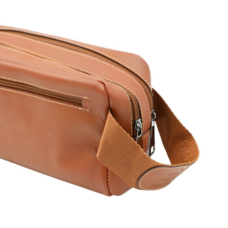 حقيبة كروس جلد حجم 22×14 سم لون عسلي