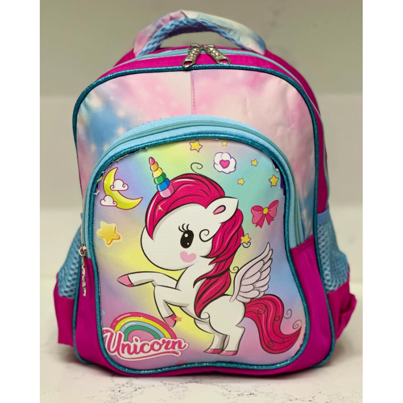 حقيبة وشنطة روضة بتصميم رسومات يونيكورن – حجم 12 إنش