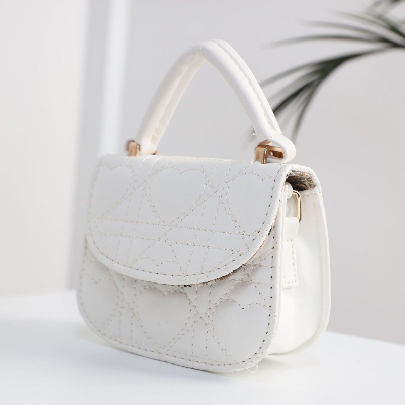 اللون: لون أبيض نقي، يناسب جميع الأزياء والمناسبات ويمنح الحقيبة مظهراً ناعماً وأنيقاً.