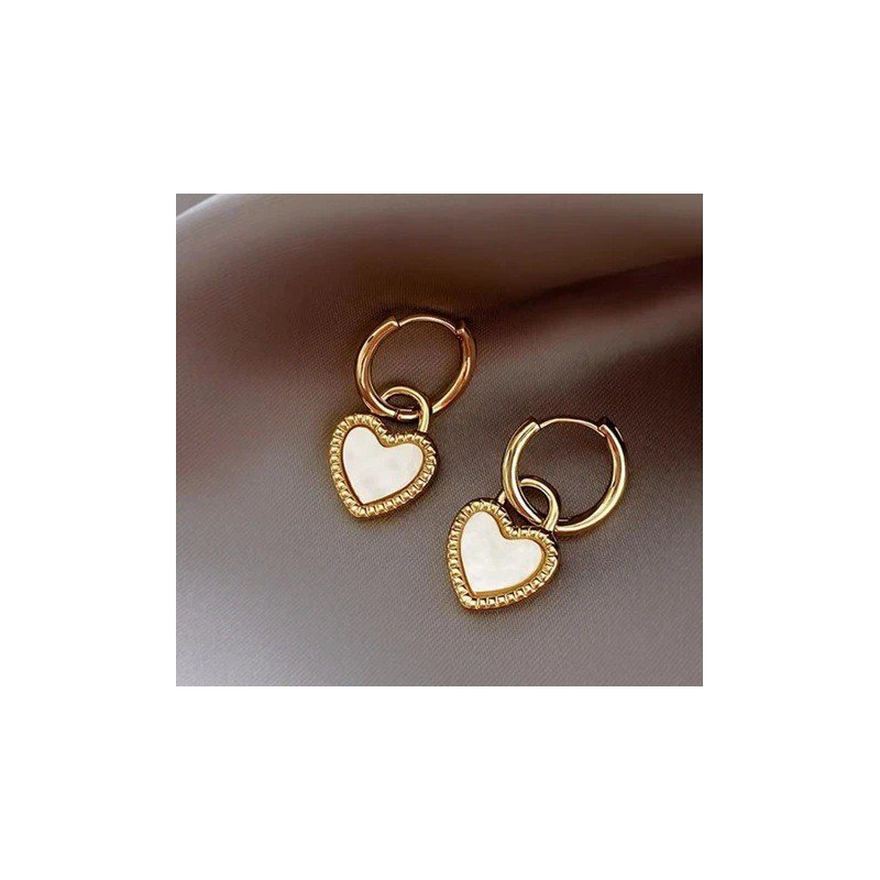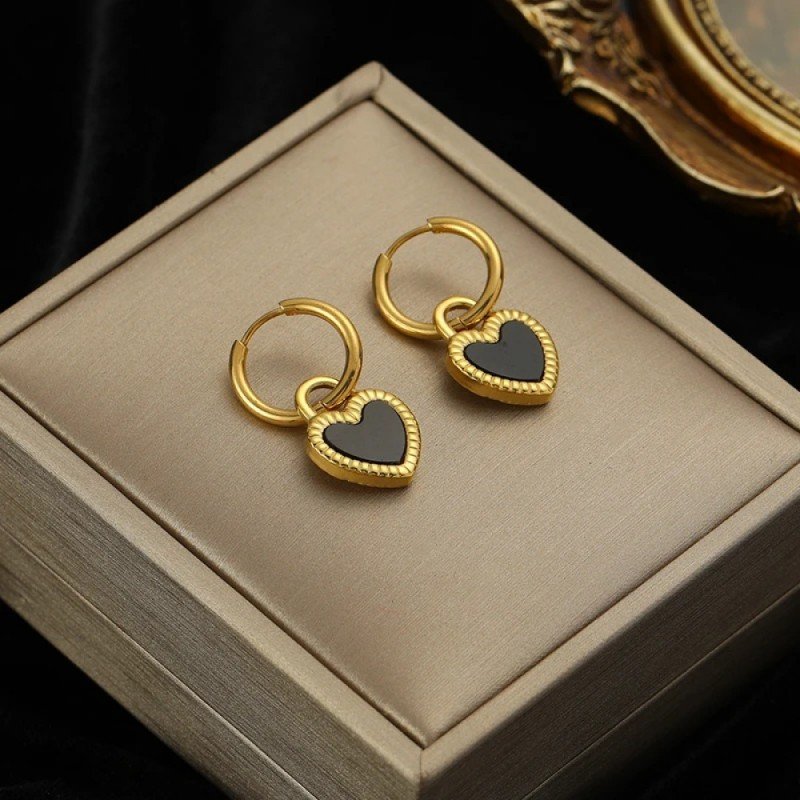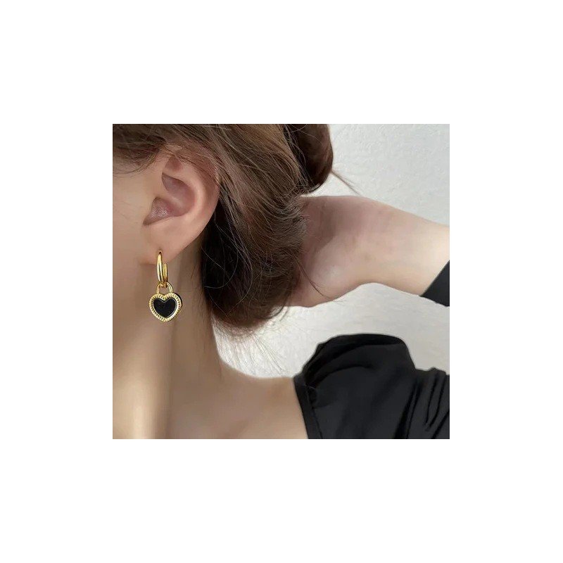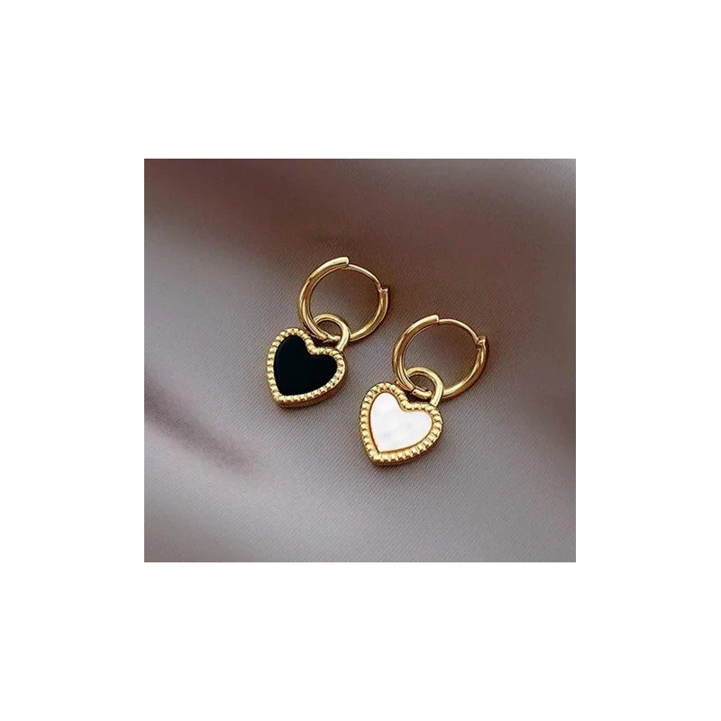 حلق ذهبي بتصميم قلب باللونين الأبيض والأسود