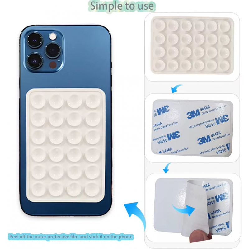 تقوم بلزقها على ظهر الهاتف ومن ثم بإمكانك تثبيت الهاتف على اي سطح مستوي