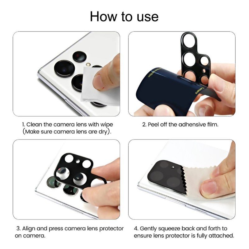 حماية زجاج لعدسة كاميرا جوال سامسونج ألترا S23 Ultra لون أسود