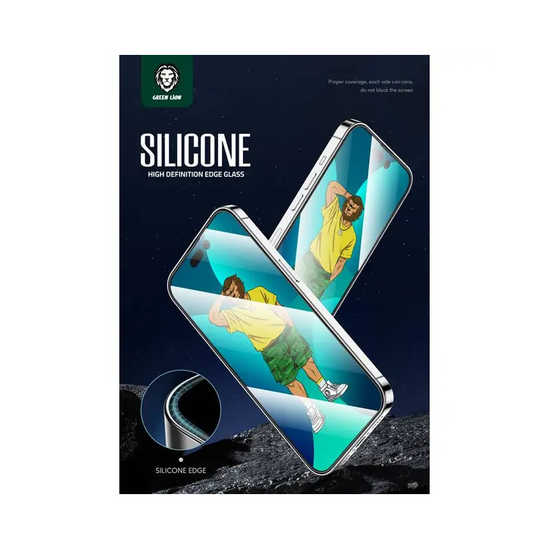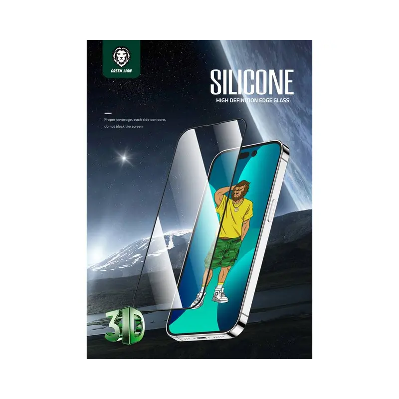 ✅ واقي شاشة زجاجي من السيليكون الأخضر ثلاثي الأبعاد لهاتف آيفون 14 برو ماكس.