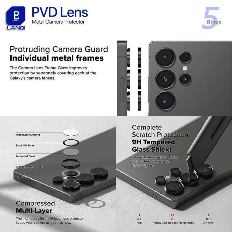 حماية عدسة كاميرا معدنية للسامسونج S25 Ultra موديل Lanbi PVD ذات 5 حلقات – لون فضي