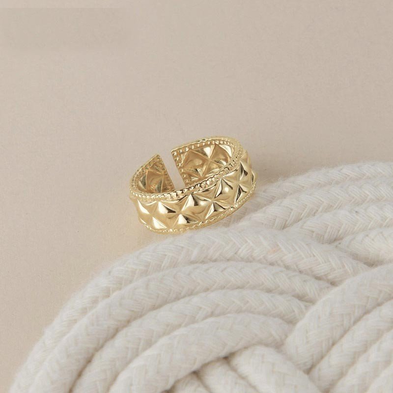 خاتم ذهبي بتصميم عريض يُعتبر خيارًا رائعًا لمن يبحثون عن قطعة مجوهرات أنيقة ومميزة لتمييز إطلالاتهم.