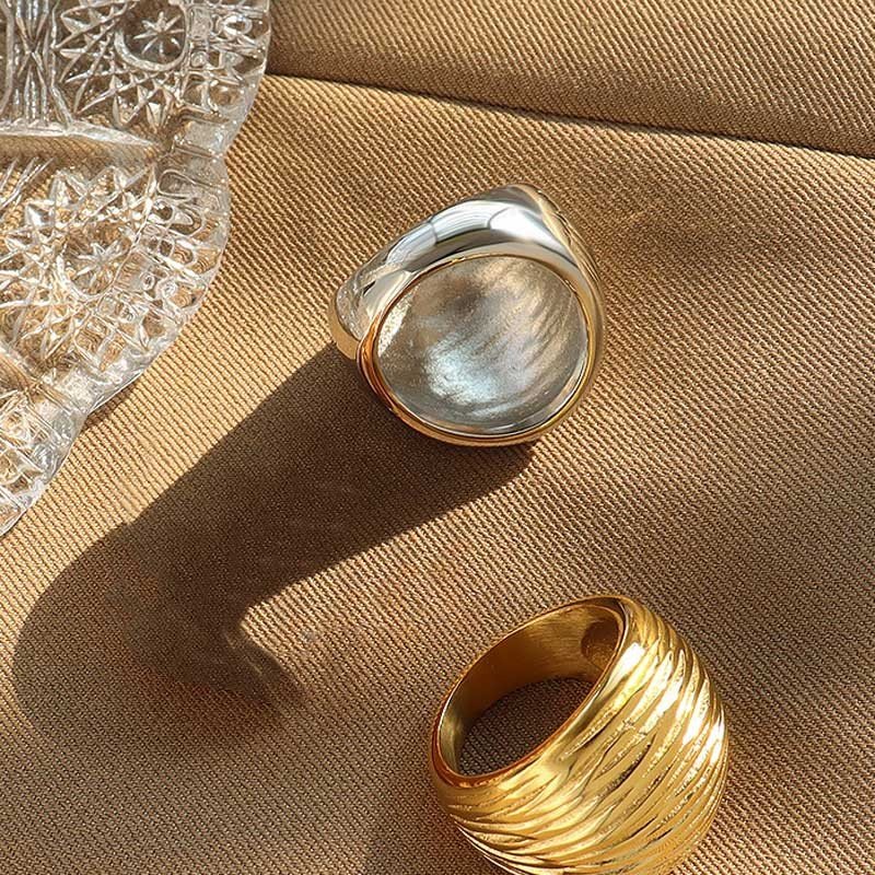 التصميم: خاتم عريض بتصميم بسيط وأنيق.
