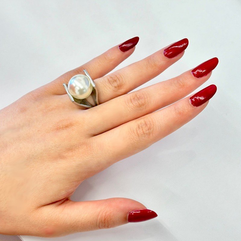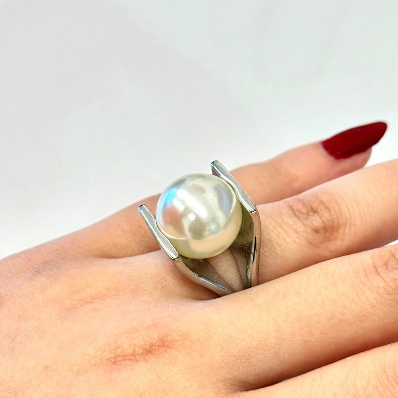 خاتم فضي بتصميم عريض مع حبة لولو يجمع بين الأناقة والرفاهية، ليكون إضافة رائعة لأي إطلالة. سواء كان للاستخدام اليومي أو للمناسبات الخاصة، فهو خيار مثالي.