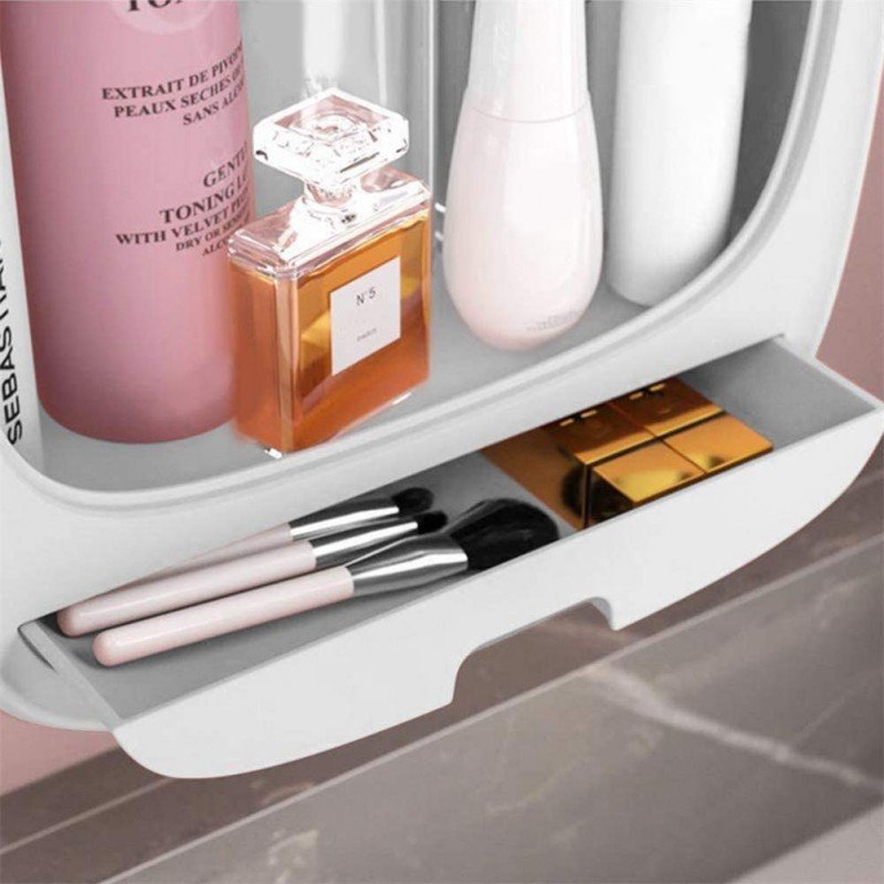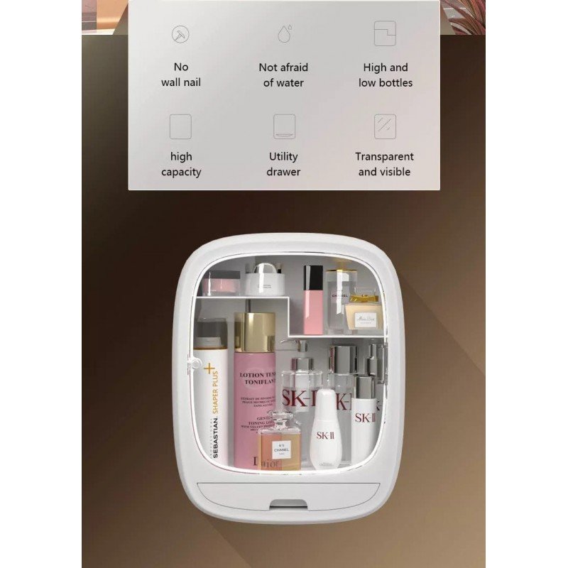 منظم مكياج مثبت على الحائط ، منظم مستحضرات التجميل والعطور والعناية بالبشرة ، صندوق تخزين مقاوم للماء والغبار لخزانة الحمام