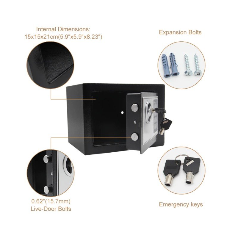 مزودة بقفل رقمي يعمل بلوحة أرقام لسهولة الفتح والإغلاق مع إمكانية تغيير الرمز السري، مما يمنح مستوى أمان إضافي. حجمها العملي يسمح بوضعها داخل الخزائن أو الأدراج دون أن تشغل مساحة كبيرة.