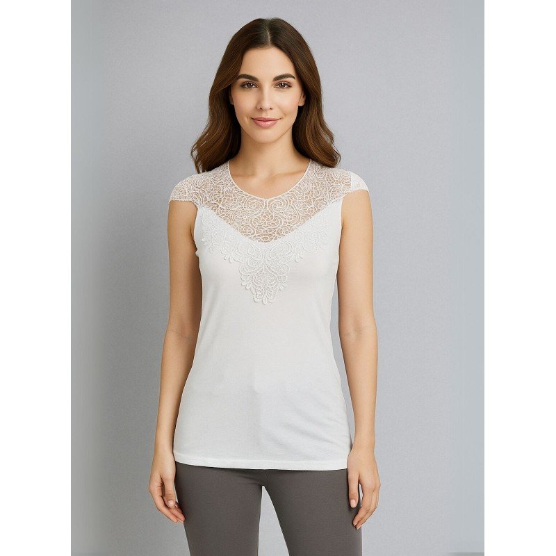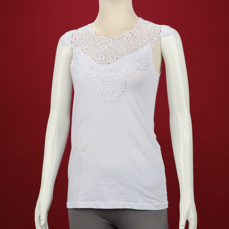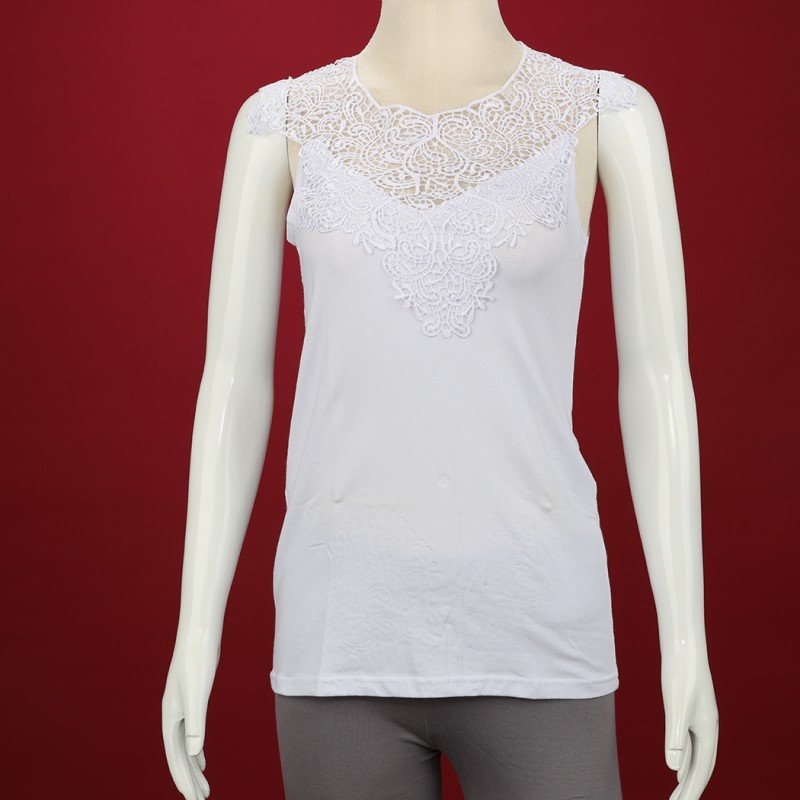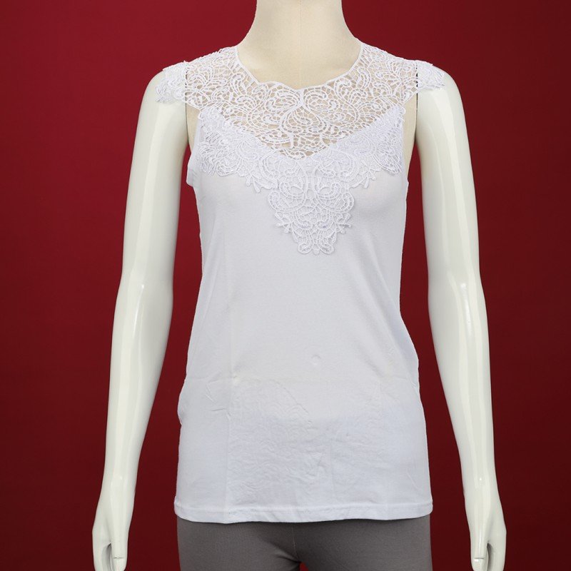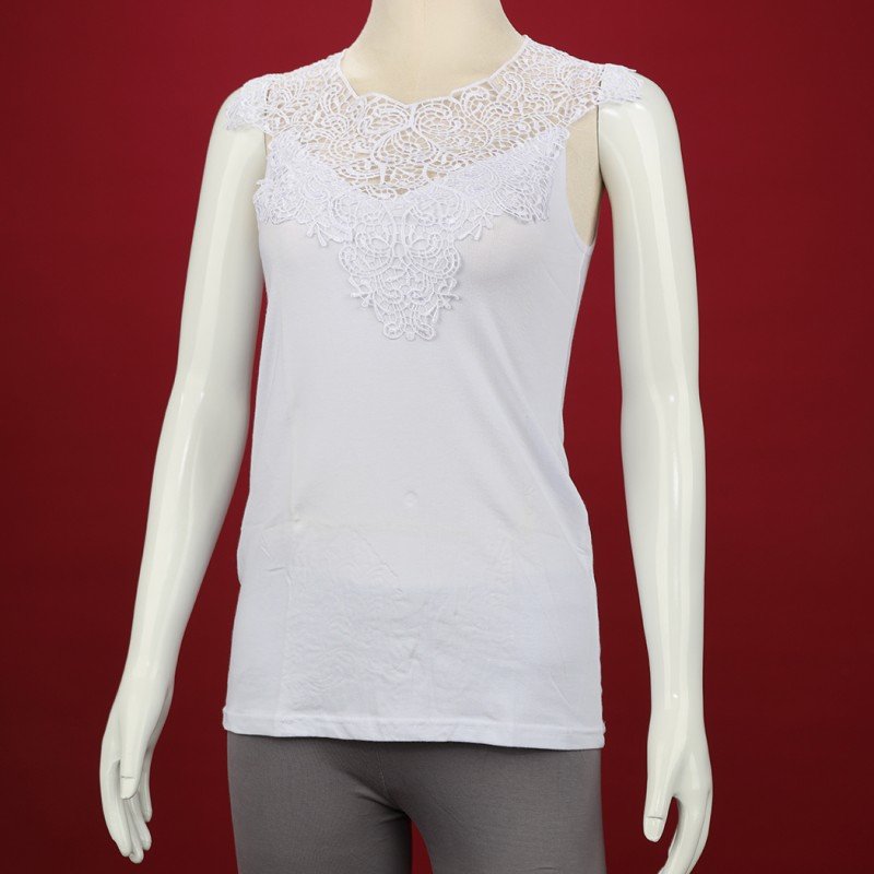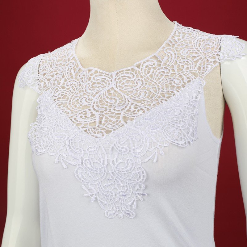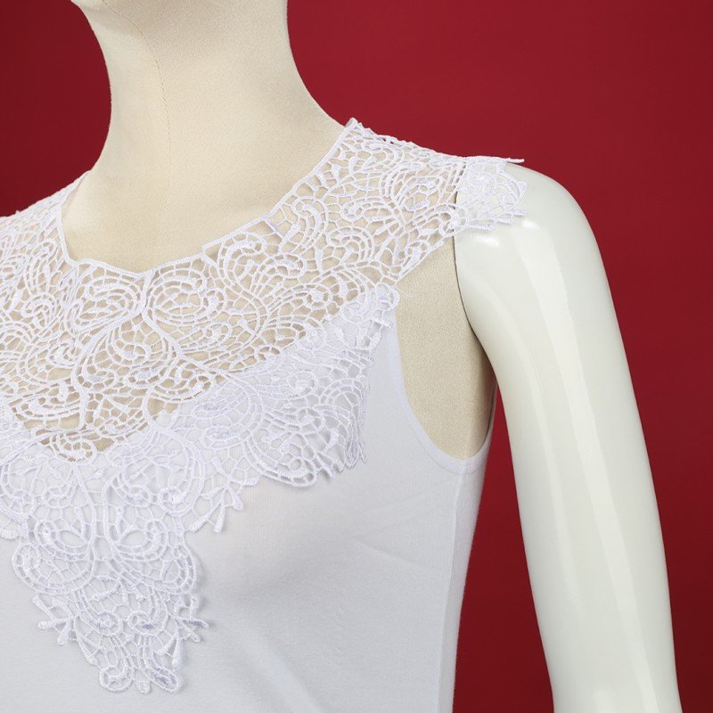 داخلي فانيلا دانتيل بحمالات كتف عريضة برخرفة دانتيل للنساء لون أبيض