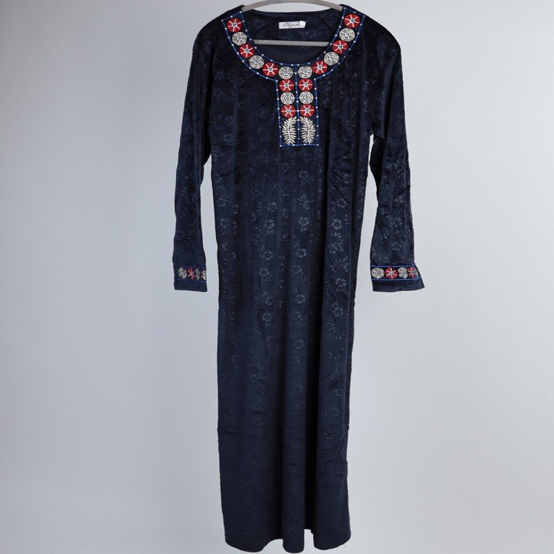 استمتعي بأناقة لا مثيل لها مع هذه الدشداشة النسائية باللون الكحلي، التي تجمع بين البساطة والراحة في تصميم عصري ومريح. مناسبة تمامًا لوقت الاسترخاء أو الاستخدام اليومي، حيث تمنحكِ شعورًا بالحرية والراحة في كل لحظة.