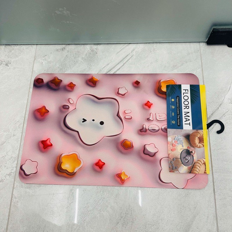 دعسة سيلكون حجم 45×65 سم برسومات ورد لون زهري