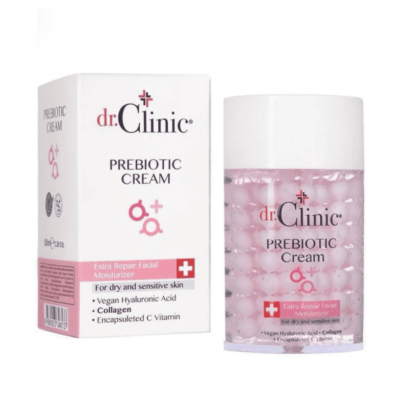 كريم مرطب ومرمم بريبوتيك للبشرة الجافة والحساسة من ماركة دكتور كلينيك، المميزات: – يحتوي على الكولاجين وفيتامين C. – يرطب ويهدئ البشرة الجافة. – يقلل من التجاعيد. طريقة الاستخدام: – يُستخدم صباحًا ومساءً على بشرة نظيفة. – ضعي كمية مناسبة ووزعيها بلطف.