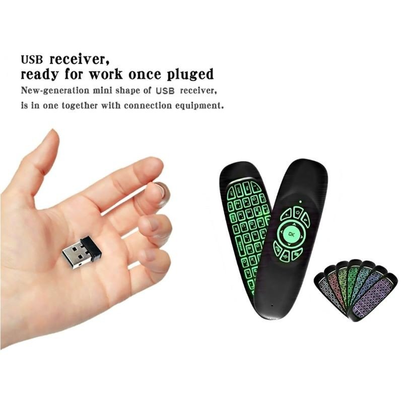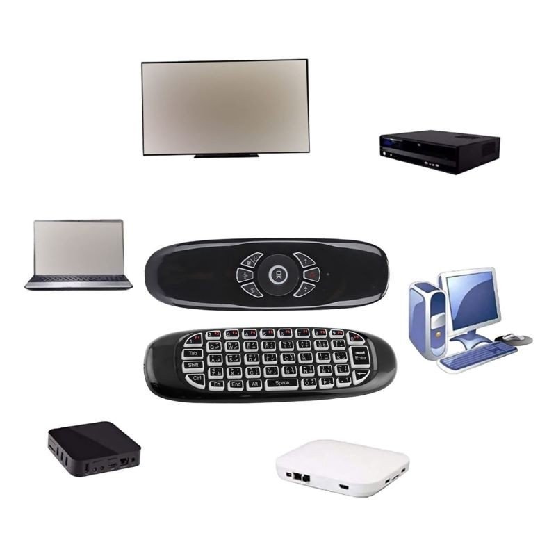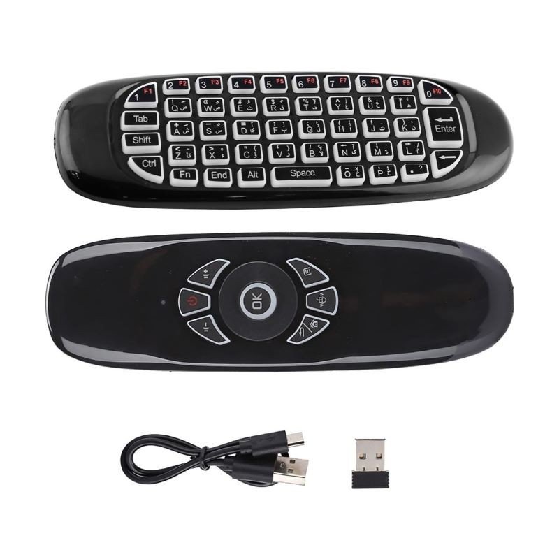 المميزات: ✅ اداة تحديد الاتجاه للماوس. ✅ لوحة المفاتيح Qwerty. ✅ يدعم اللغتين العربية والإنجليزية. ✅ هذا الريموت 2.4 جيجا هيرتز لاسلكي مع مستقبل USB نانو. ✅ ماوس ويرلس بتقنية مقاومة الاهتزاز. ✅ جهاز تحكم عن بعد مصمم خصيصًا لأجهزة الاندرويد المزودة ببطارية ليثيوم ايون قابلة لاعادة الشحن. ✅ جهاز تحكم عن بعد بزاوية 360 درجة. ✅ يحتوي على 7 ألوان (RGB) إضاءة خلفية. ✅ متوافق مع انظمة التشغيل Android وWindows وLinux وMac OS. ✅ في العلبة: ريموت، قابس USB، كيبل Micro-USB، كتيّب.