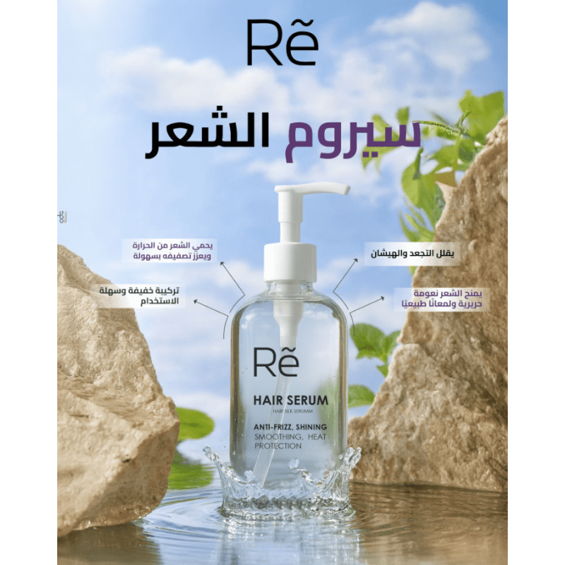 سيروم الحرير للشعر من Rẽ يقلل التجعد والهيشان يمنح الشعر نعومة حريرية ولمعان طبيعي يحمي الشعر من الحرارة ويخلي التصفيف أسهل تركيبة خفيفة وسهلة الاستخدام