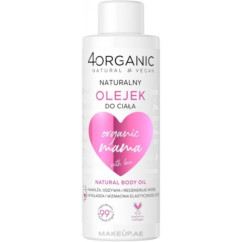 زيت طبيعي غني بمكونات عضوية (99%) مخصص للأمهات والحوامل، يغذي البشرة ويزيد مرونتها ليساعد على الوقاية من علامات التمدد. يحتوي على زيت زهرة الربيع المسائي المجدد والمهدئ، وزيت المكاديميا لنعومة فائقة، مع فيتامين E كمضاد أكسدة يحمي البشرة ويسرّع تجددها. نباتي، مختبَر جلديًا، ومثالي للتدليك والعناية اليومية بالبشرة.