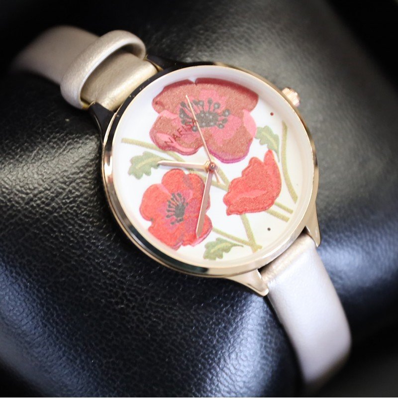 ساعة جلد ستاتيّة من Nafisa – عقارب لون بيج