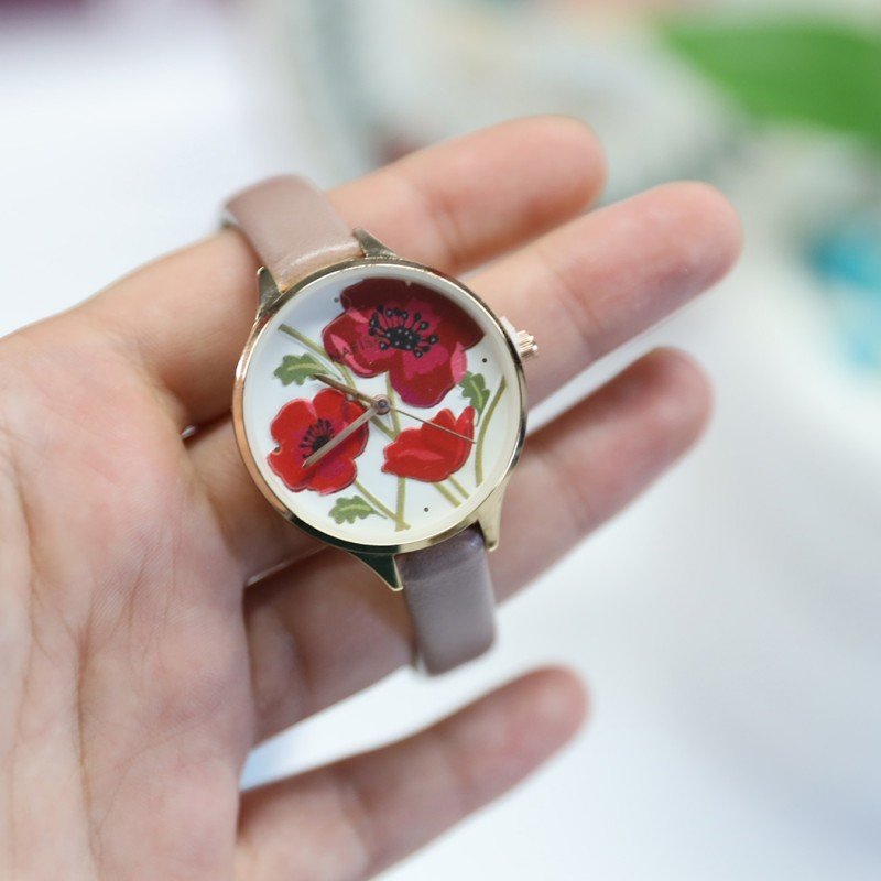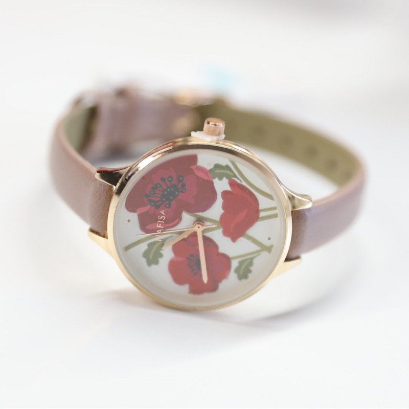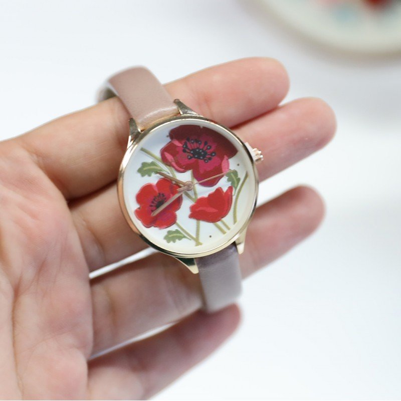 ساعة جلد ستاتيّة من Nafisa – عقارب لون نهدي