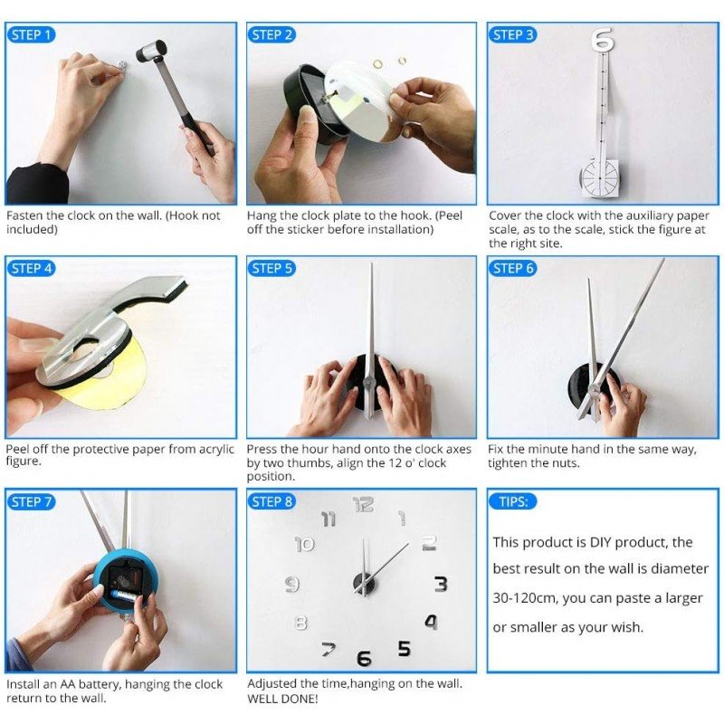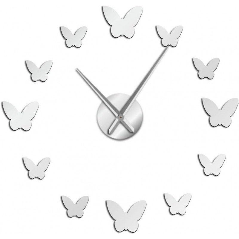 ساعة حائط لزقات – فضي – فراشة