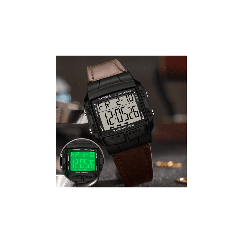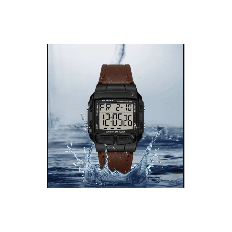 ساعة رقمية مربعة جلد لون بني