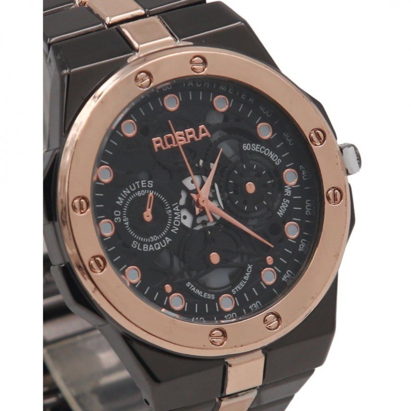 ساعة رياضية أنالوج كوارتز ميناء اسود للرجال لون أسود ونحاسي
