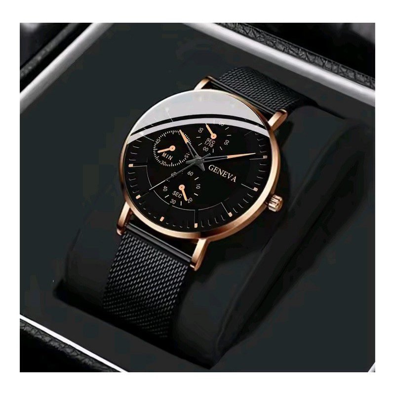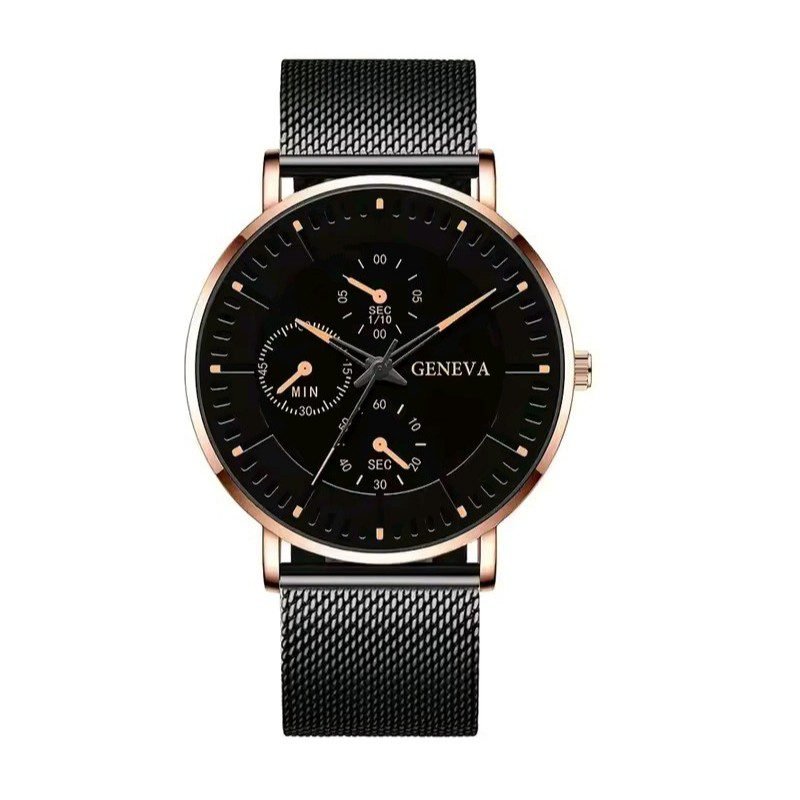 ساعة للرجال ذات حزام معدني شبكي – ماركة Geneva – لون أسود