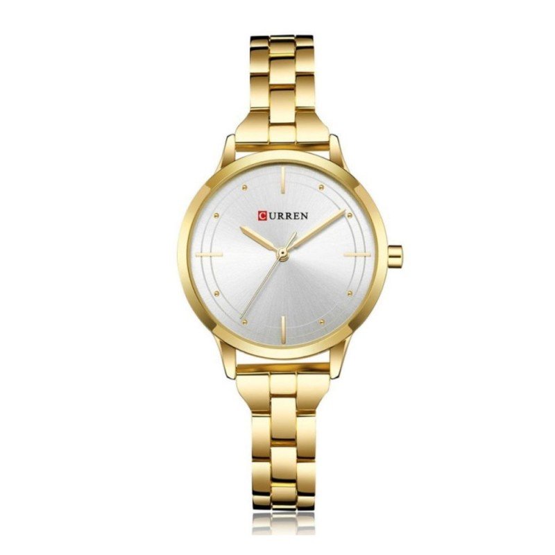 ساعة معدنية للرجال لون ذهبي أرضية بيضاء
