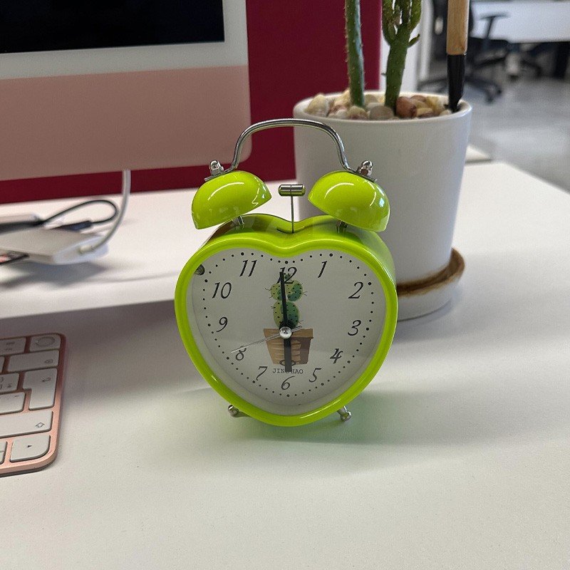 ساعة منبه أنالوج كلاسيكية بجرس مزدوج وتصميم قلب لون أخضر
