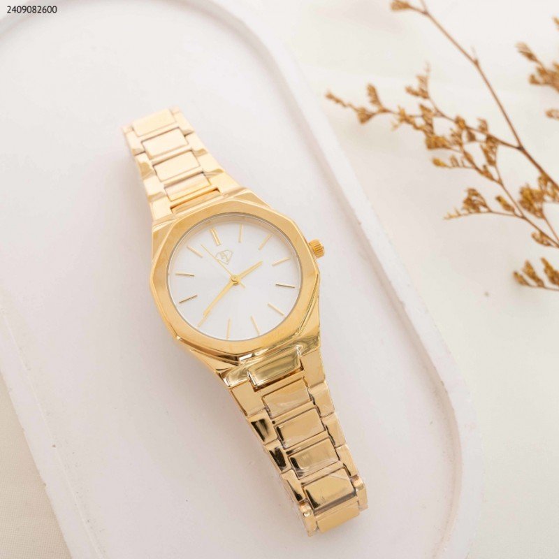 ساعة نسائية دائرية (اللون: ذهبي)