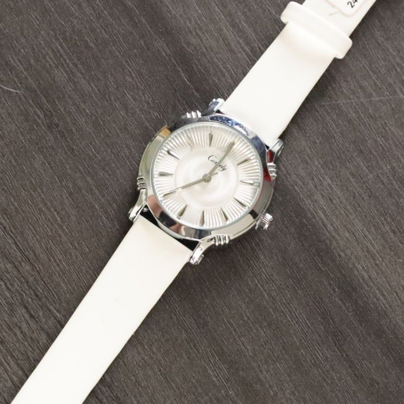 ساعة نسائية دائرية مع حزام جلدي (اللون: فضي و اسود)