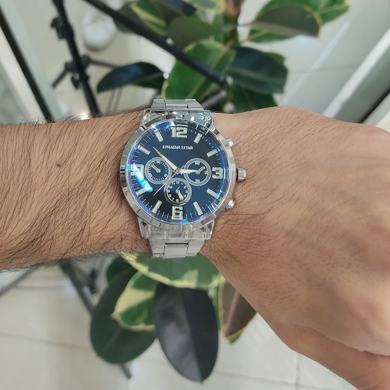 ساعة يد أنيقة للرجال مع حزام ستانلس – لون سيلفر وأرضية زرقاء