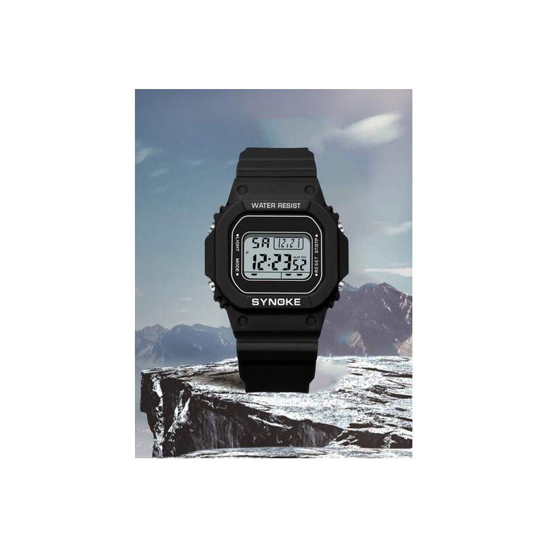 ساعة يد رقمية للرجال – مقاومة لرذاذ الماء – لون اسود – ماركة Synoke