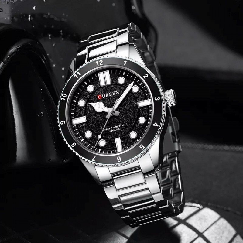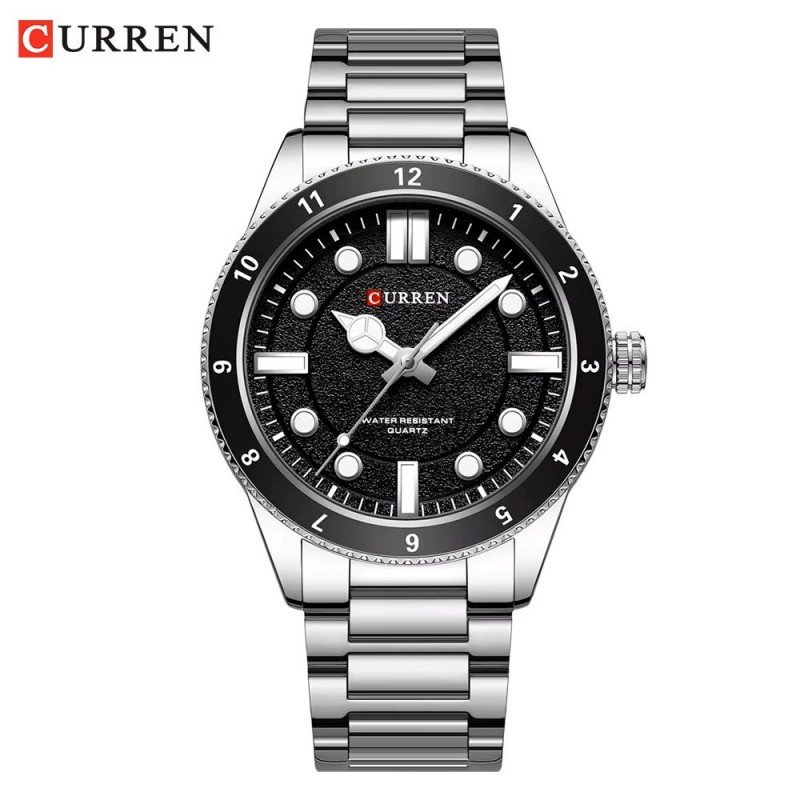 ساعة يد عصرية للرجال مع حزام ستانلس – ماركة Curren – لون سيلفر
